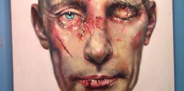 Concept of the interview. What punishment do you believe Putin should receive if you were chosen as a juror for the Criminal International Court in The Hague? The choice: hanging, firing squad, poisoning, or the electric chair? It has been overheard that some people with Russian accent said: This painting is a shame, it should be taken down and cut up by a Siberian hunting knife. Putin is my president. I spoke to Laarttv journalist Hans Schmitt, being informed about such statements, saying. As part of the edit, the public will be nameless, protected by a black bar that will disguise their face. In contrast, he said he had recorded some people who backed Putin. It's helpful to have both sides make controversial statements. True journalism, I thought. Unfortunately, no one was serving Putin’s vodka brand, being sold in Russia.